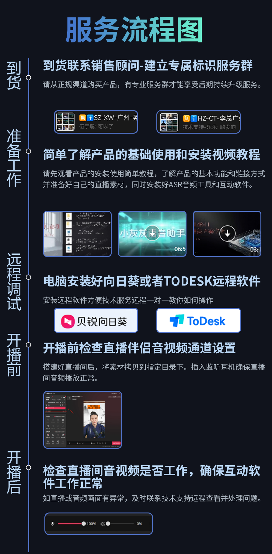 设备的主要作用体现在输入信号源的转换跟对于素材的实时处理,硬件设备会完成按照标准摄像头的协议模拟实时信号传输到直播间,设备会对画面的多项实时变量处理,音频的闪避插入去重以及搭配